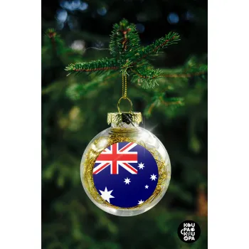 Australia flag, Στολίδι Χριστουγεννιάτικη μπάλα δένδρου διάφανη με χρυσό γέμισμα 8cm