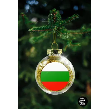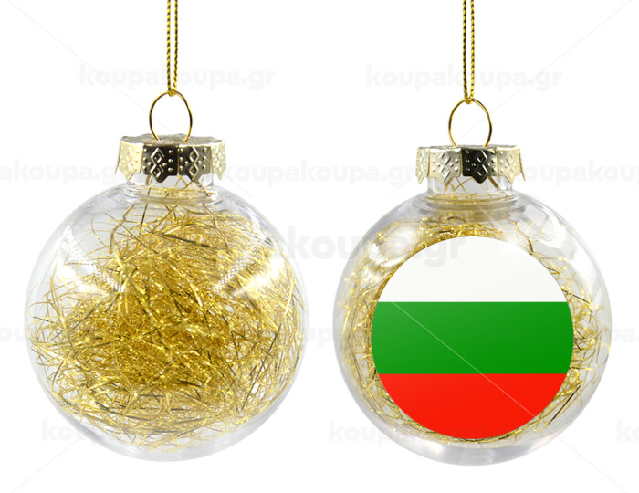 Bulgaria flag, Στολίδι Χριστουγεννιάτικη μπάλα δένδρου διάφανη με χρυσό γέμισμα 8cm