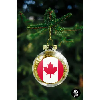 Canada flag, Στολίδι Χριστουγεννιάτικη μπάλα δένδρου διάφανη με χρυσό γέμισμα 8cm