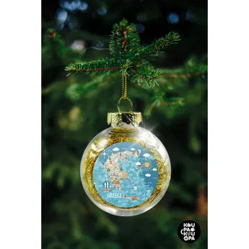 Χάρτης Ελλάδος, Στολίδι Χριστουγεννιάτικη μπάλα δένδρου διάφανη με χρυσό γέμισμα 8cm