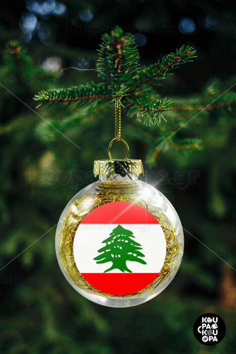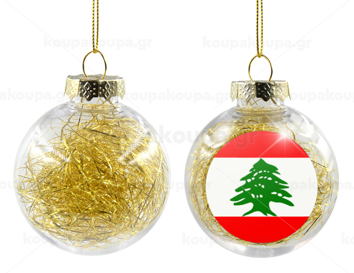 Lebanon flag, Στολίδι Χριστουγεννιάτικη μπάλα δένδρου διάφανη με χρυσό γέμισμα 8cm