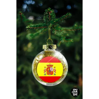 Spain flag, Στολίδι Χριστουγεννιάτικη μπάλα δένδρου διάφανη με χρυσό γέμισμα 8cm
