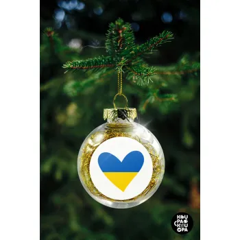 UKRAINE heart, Στολίδι Χριστουγεννιάτικη μπάλα δένδρου διάφανη με χρυσό γέμισμα 8cm