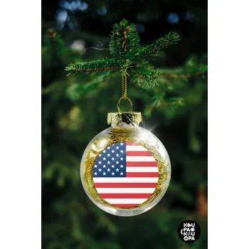 USA flag, Στολίδι Χριστουγεννιάτικη μπάλα δένδρου διάφανη με χρυσό γέμισμα 8cm