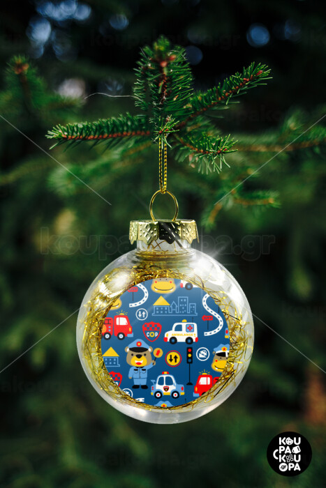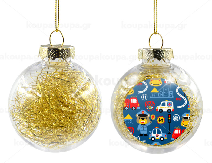 Rescue team cartoon, Στολίδι Χριστουγεννιάτικη μπάλα δένδρου διάφανη με χρυσό γέμισμα 8cm