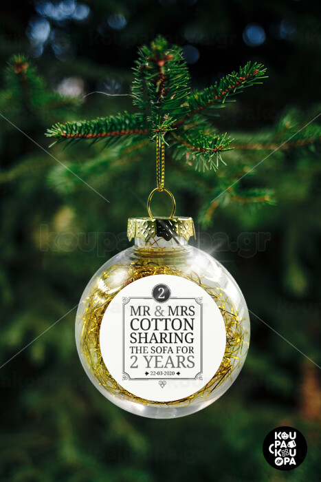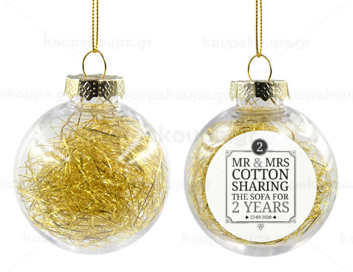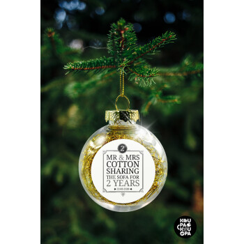 Mr & Mrs Sharing the sofa, Στολίδι Χριστουγεννιάτικη μπάλα δένδρου διάφανη με χρυσό γέμισμα 8cm