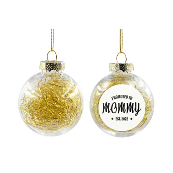 BABY, MOMMY, DADDY Low battery, Στολίδι Χριστουγεννιάτικη μπάλα δένδρου διάφανη με χρυσό γέμισμα 8cm