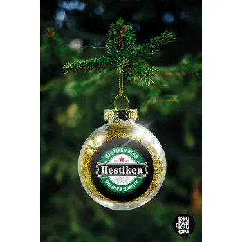 Hestiken Beer, Στολίδι Χριστουγεννιάτικη μπάλα δένδρου διάφανη με χρυσό γέμισμα 8cm