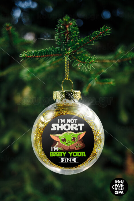 I'm not short, i'm Baby Yoda size, Στολίδι Χριστουγεννιάτικη μπάλα δένδρου διάφανη με χρυσό γέμισμα 8cm