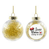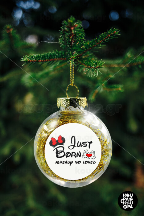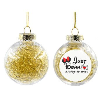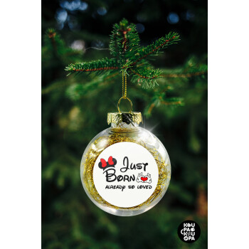 Just born already so loved, Στολίδι Χριστουγεννιάτικη μπάλα δένδρου διάφανη με χρυσό γέμισμα 8cm