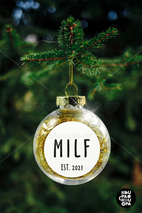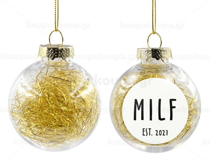 MILF, Στολίδι Χριστουγεννιάτικη μπάλα δένδρου διάφανη με χρυσό γέμισμα 8cm