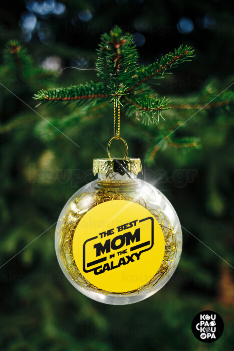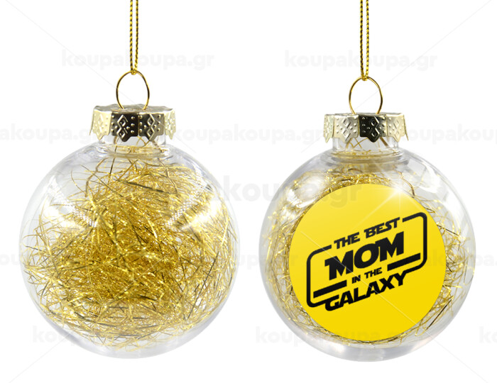 The Best MOM in the Galaxy, Στολίδι Χριστουγεννιάτικη μπάλα δένδρου διάφανη με χρυσό γέμισμα 8cm