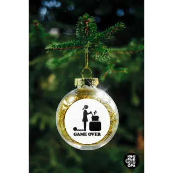 Woman Game Over, Στολίδι Χριστουγεννιάτικη μπάλα δένδρου διάφανη με χρυσό γέμισμα 8cm