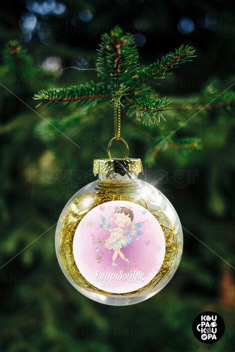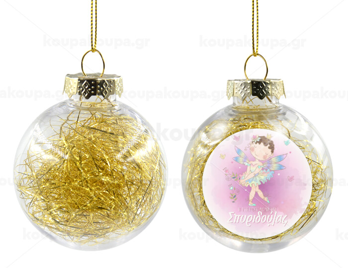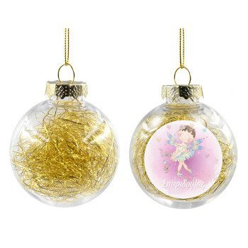 Η νονά μου, Νεράϊδα, Στολίδι Χριστουγεννιάτικη μπάλα δένδρου διάφανη με χρυσό γέμισμα 8cm