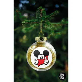 Mickey fuck off, Στολίδι Χριστουγεννιάτικη μπάλα δένδρου διάφανη με χρυσό γέμισμα 8cm