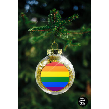 Rainbow flag (LGBT) , Στολίδι Χριστουγεννιάτικη μπάλα δένδρου διάφανη με χρυσό γέμισμα 8cm