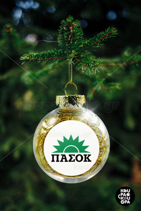 ΠΑΣΟΚ, Στολίδι Χριστουγεννιάτικη μπάλα δένδρου διάφανη με χρυσό γέμισμα 8cm