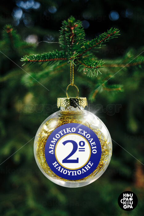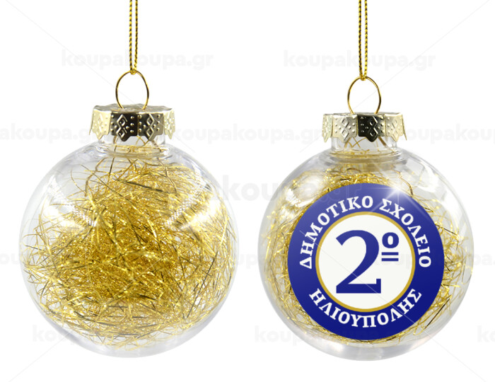 Έμβλημα Σχολικό μπλε/χρυσό, Στολίδι Χριστουγεννιάτικη μπάλα δένδρου διάφανη με χρυσό γέμισμα 8cm
