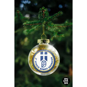 Χριστουγεννιάτικο διακοσμητικό στολίδι διάφανο με μεταλιζέ angel hair εσωτερικά σε μέγεθος 8cm, ελαφρύ σε μέγεθος για να μην κρεμάει το κλαδάκι, με κορδόνι στήριξης για τα κλαδάκια.