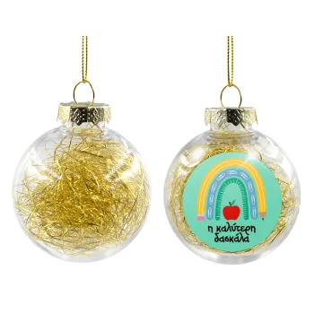Η καλύτερη δασκάλα, Στολίδι Χριστουγεννιάτικη μπάλα δένδρου διάφανη με χρυσό γέμισμα 8cm