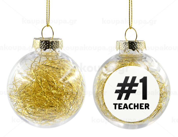 #1 teacher, Στολίδι Χριστουγεννιάτικη μπάλα δένδρου διάφανη με χρυσό γέμισμα 8cm