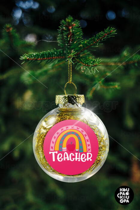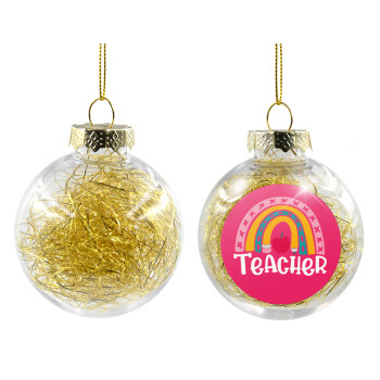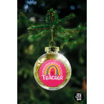 Rainbow teacher, Στολίδι Χριστουγεννιάτικη μπάλα δένδρου διάφανη με χρυσό γέμισμα 8cm
