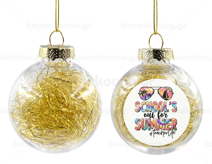 School's Out For Summer Teacher Life, Στολίδι Χριστουγεννιάτικη μπάλα δένδρου διάφανη με χρυσό γέμισμα 8cm