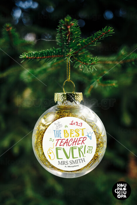 The best teacher ever!, Στολίδι Χριστουγεννιάτικη μπάλα δένδρου διάφανη με χρυσό γέμισμα 8cm