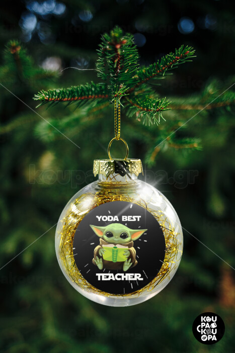 Yoda Best Teacher, Στολίδι Χριστουγεννιάτικη μπάλα δένδρου διάφανη με χρυσό γέμισμα 8cm