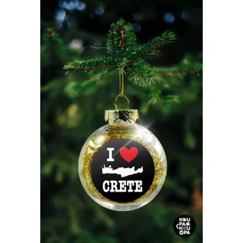 I Love Crete, Στολίδι Χριστουγεννιάτικη μπάλα δένδρου διάφανη με χρυσό γέμισμα 8cm