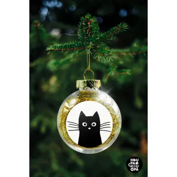 Μαύρη γάτα, Στολίδι Χριστουγεννιάτικη μπάλα δένδρου διάφανη με χρυσό γέμισμα 8cm