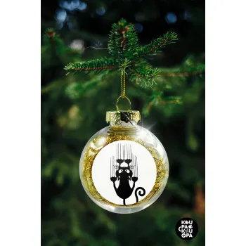 Cat scratching, Στολίδι Χριστουγεννιάτικη μπάλα δένδρου διάφανη με χρυσό γέμισμα 8cm