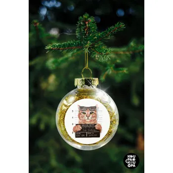 Cool cat, Στολίδι Χριστουγεννιάτικη μπάλα δένδρου διάφανη με χρυσό γέμισμα 8cm