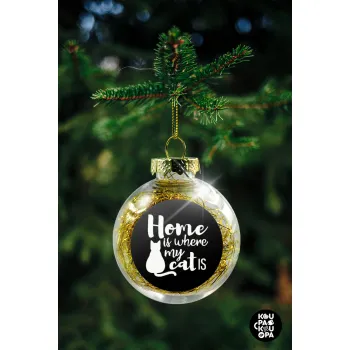 Home is where my cat is!, Στολίδι Χριστουγεννιάτικη μπάλα δένδρου διάφανη με χρυσό γέμισμα 8cm