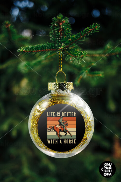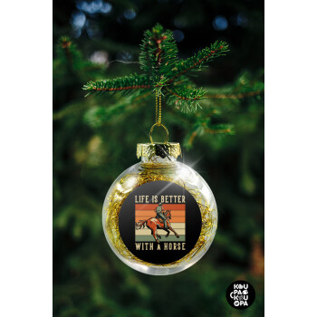 Life is Better with a Horse, Στολίδι Χριστουγεννιάτικη μπάλα δένδρου διάφανη με χρυσό γέμισμα 8cm