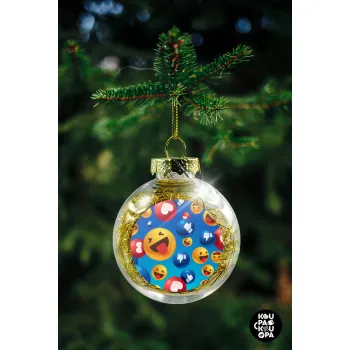 3D Emoji Collection, Στολίδι Χριστουγεννιάτικη μπάλα δένδρου διάφανη με χρυσό γέμισμα 8cm