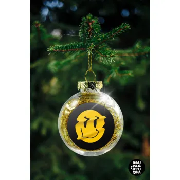 Smile avatar distrorted, Στολίδι Χριστουγεννιάτικη μπάλα δένδρου διάφανη με χρυσό γέμισμα 8cm