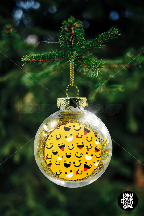 Smilies , Στολίδι Χριστουγεννιάτικη μπάλα δένδρου διάφανη με χρυσό γέμισμα 8cm