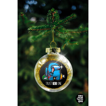 Among Trust no one, Στολίδι Χριστουγεννιάτικη μπάλα δένδρου διάφανη με χρυσό γέμισμα 8cm