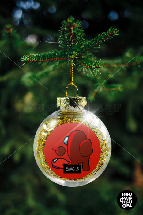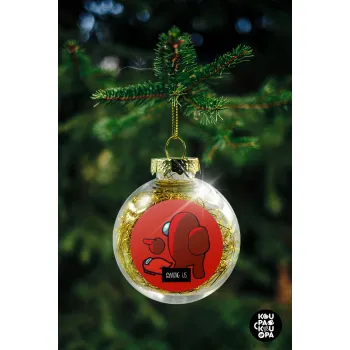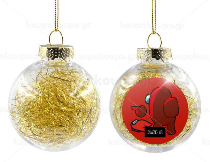 Among US i am impostor..., Στολίδι Χριστουγεννιάτικη μπάλα δένδρου διάφανη με χρυσό γέμισμα 8cm