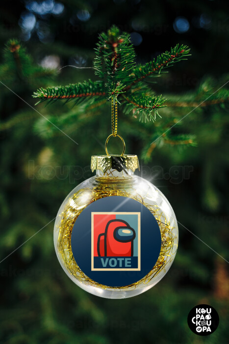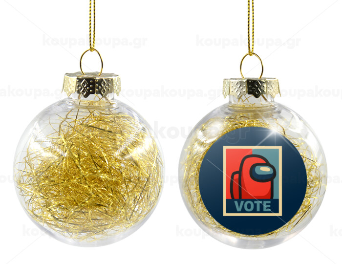 Among US VOTE, Στολίδι Χριστουγεννιάτικη μπάλα δένδρου διάφανη με χρυσό γέμισμα 8cm