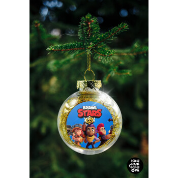 Brawl Stars Blue, Στολίδι Χριστουγεννιάτικη μπάλα δένδρου διάφανη με χρυσό γέμισμα 8cm