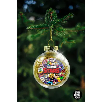 Brawl Stars characters, Στολίδι Χριστουγεννιάτικη μπάλα δένδρου διάφανη με χρυσό γέμισμα 8cm