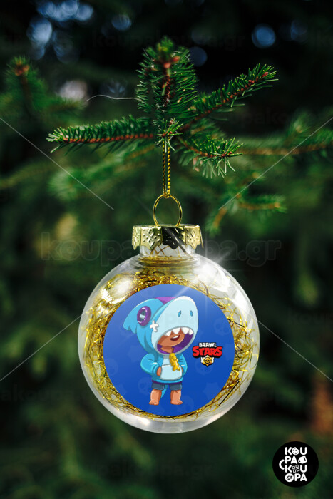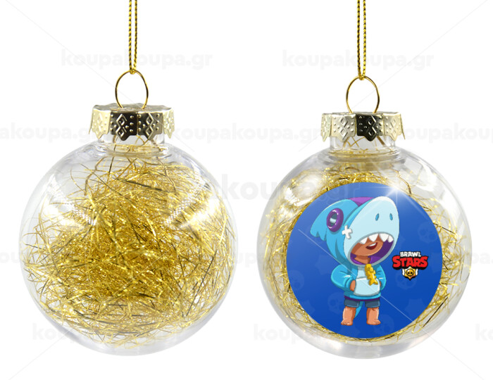 Brawl Stars Leon Shark, Στολίδι Χριστουγεννιάτικη μπάλα δένδρου διάφανη με χρυσό γέμισμα 8cm