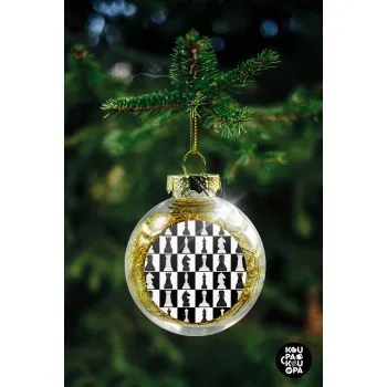 Chess set, Στολίδι Χριστουγεννιάτικη μπάλα δένδρου διάφανη με χρυσό γέμισμα 8cm