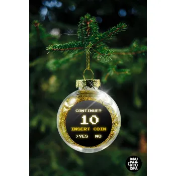 Continue? YES - NO, Στολίδι Χριστουγεννιάτικη μπάλα δένδρου διάφανη με χρυσό γέμισμα 8cm