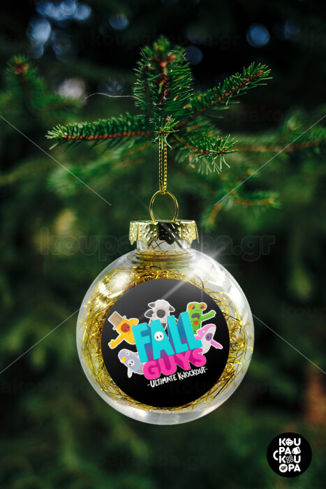 FALL GUYS, Στολίδι Χριστουγεννιάτικη μπάλα δένδρου διάφανη με χρυσό γέμισμα 8cm