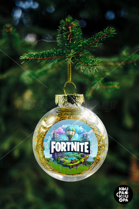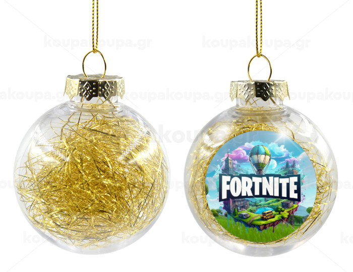 Fortnite land, Στολίδι Χριστουγεννιάτικη μπάλα δένδρου διάφανη με χρυσό γέμισμα 8cm