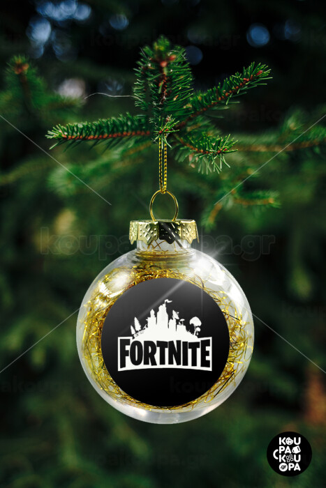 Fortnite, Στολίδι Χριστουγεννιάτικη μπάλα δένδρου διάφανη με χρυσό γέμισμα 8cm