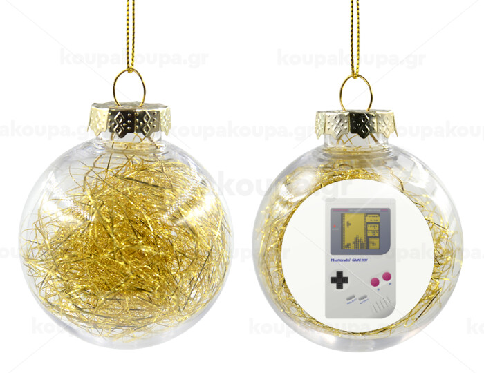 Gameboy, Στολίδι Χριστουγεννιάτικη μπάλα δένδρου διάφανη με χρυσό γέμισμα 8cm
